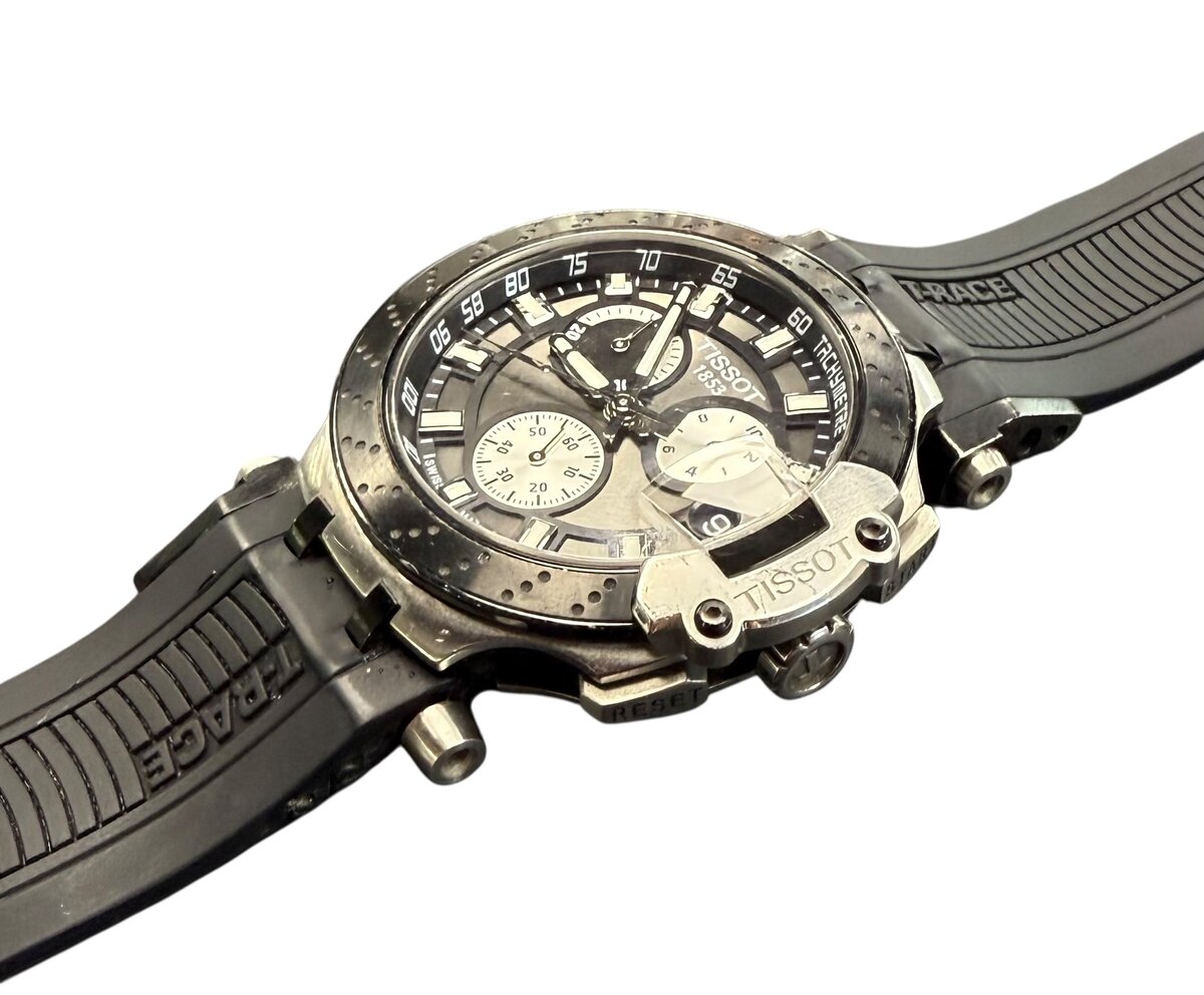 Type: Wrist watchBrand: TissotModel number: T-raceCase width: 45mmWeight: 70.6Movement type: Quartz (Battery)Case Material: Stainless SteelBox included: noPaperwork included: noRunning: noDial color: blackCondition:Used