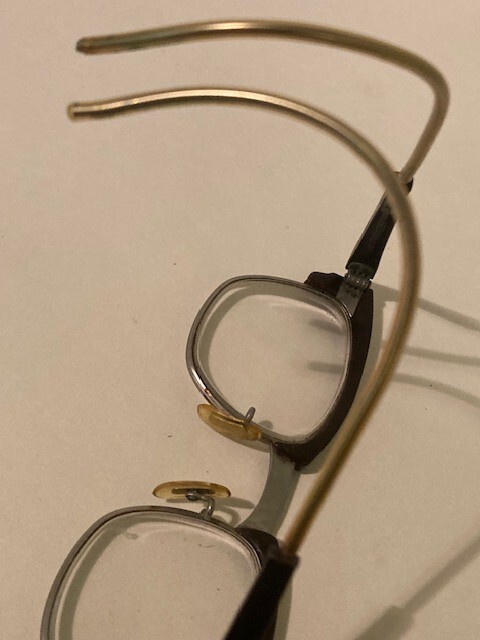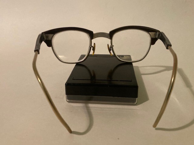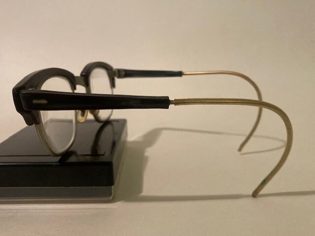 Vintage American Optical AO Safety Glasses Nerd Style Script Lenses 61/2 46-24 Good solid. Could use a good cleaning. Please note that these are prescription. There are small areas with tarnish as shown. Some tarnish in inside left bow. A bit of green on wrap arounds (per final images). Please refer to images.