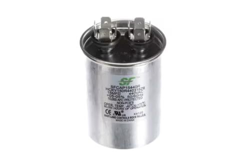 Fits Trane 202010197 SFTM SFCAP15440R HCKY 150R440318Z6 OPER. TEMP. -40Cto +70C 60,000 HOURS OF OPERATION CE cRUus K4120 HARTLAND CONTROLS ROCK FALLS,IL MADE IN CHINA Capacitor, Run, 440 Volt, 50-60HZ, 15MFD, Round
