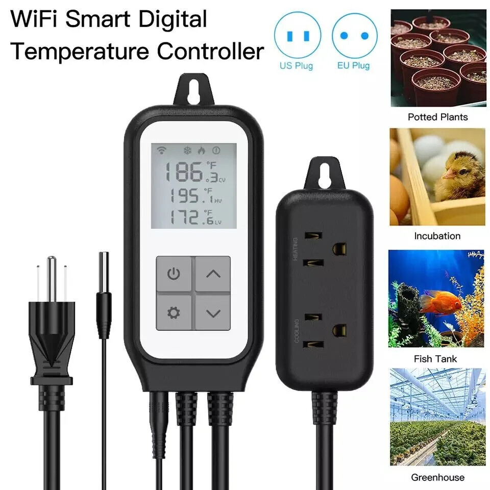 It is an easy-to-use, safe and reliable dual relay output temperature controller/Thermostat. It can be used as over temperature protection and automatic temperature control system for various electric appliances such as equipment for home-brew, pet breeding, incubation, seedling heat mats, terrestrial heat control, constant temperature cycle of heating pump, culture fermentation, accelerating germination, electric radiator, electric oven, etc.