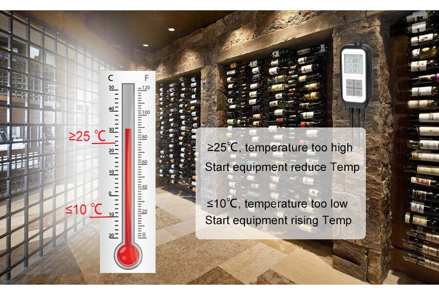 1. Dual relay output sockets: Be able to connect with refrigeration and heating equipment at the same time.