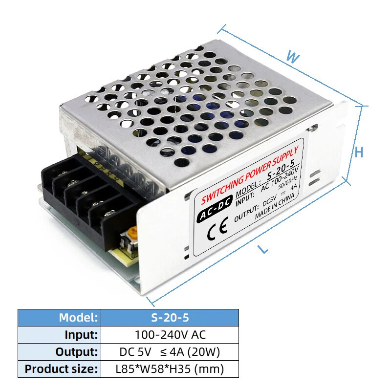 DC 5V 20W Switch Power Supply 100-240V LED Driver Transformer Converter Adapter