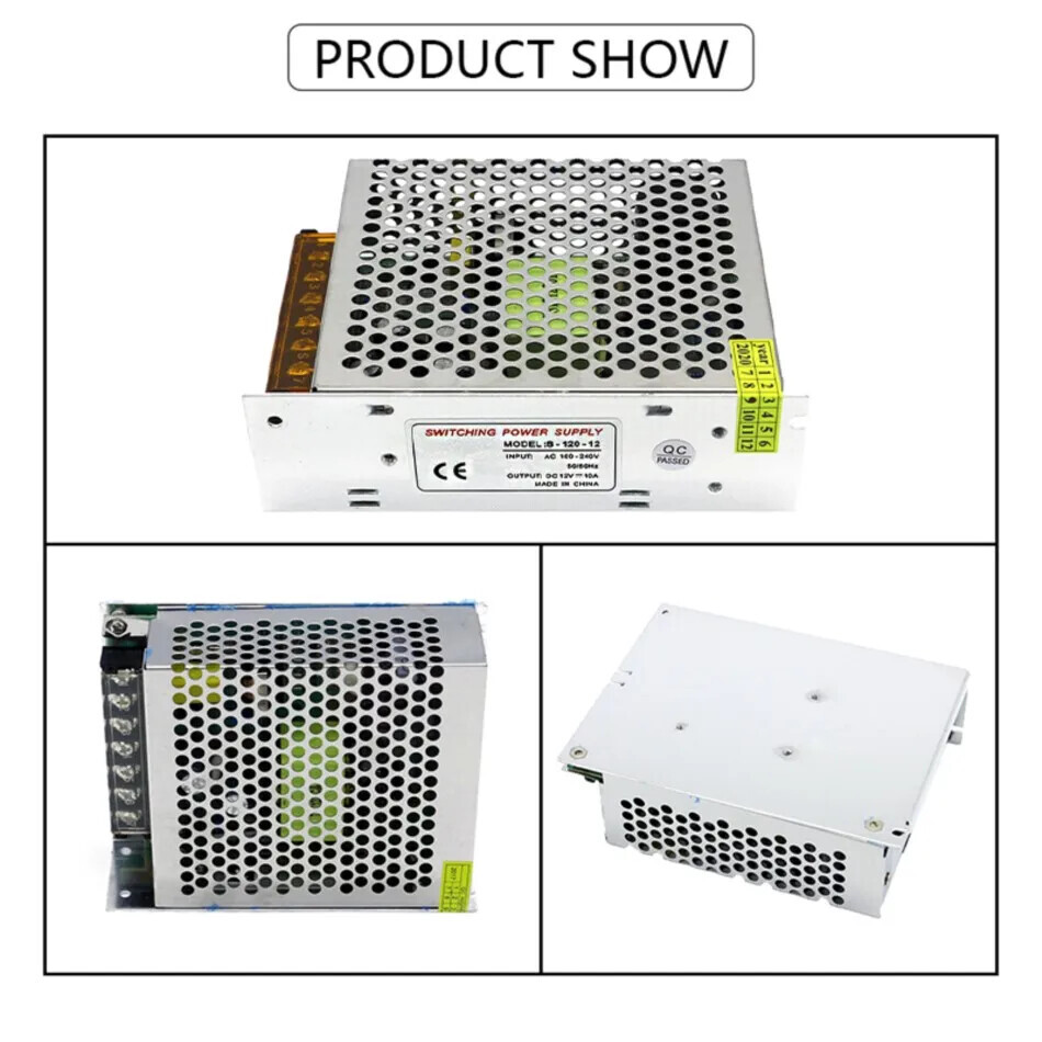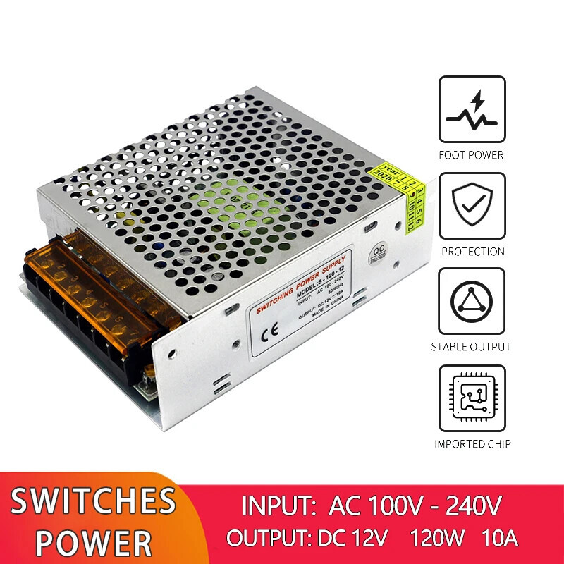 12V 120W Switch Power Supply 100-240V AC to DC LED Transformer Adapter Converter