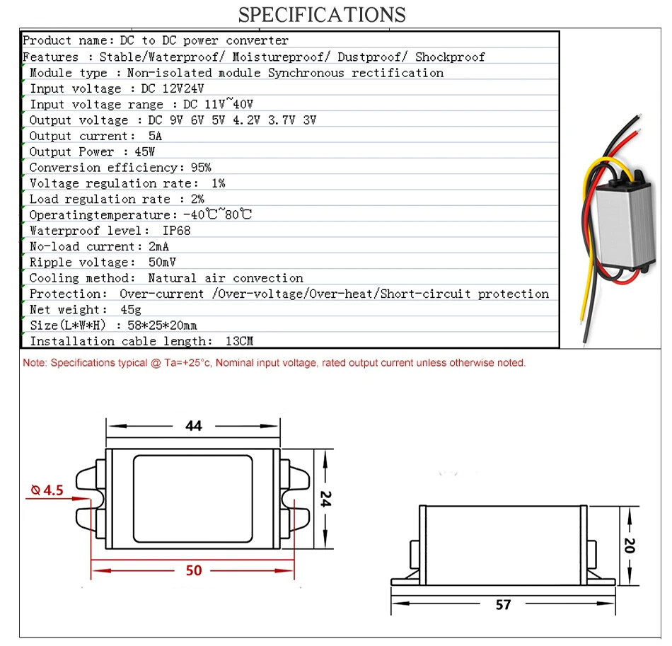 High Current DC DC Adjustable 12V 24V To 9V 6V Power Converter |