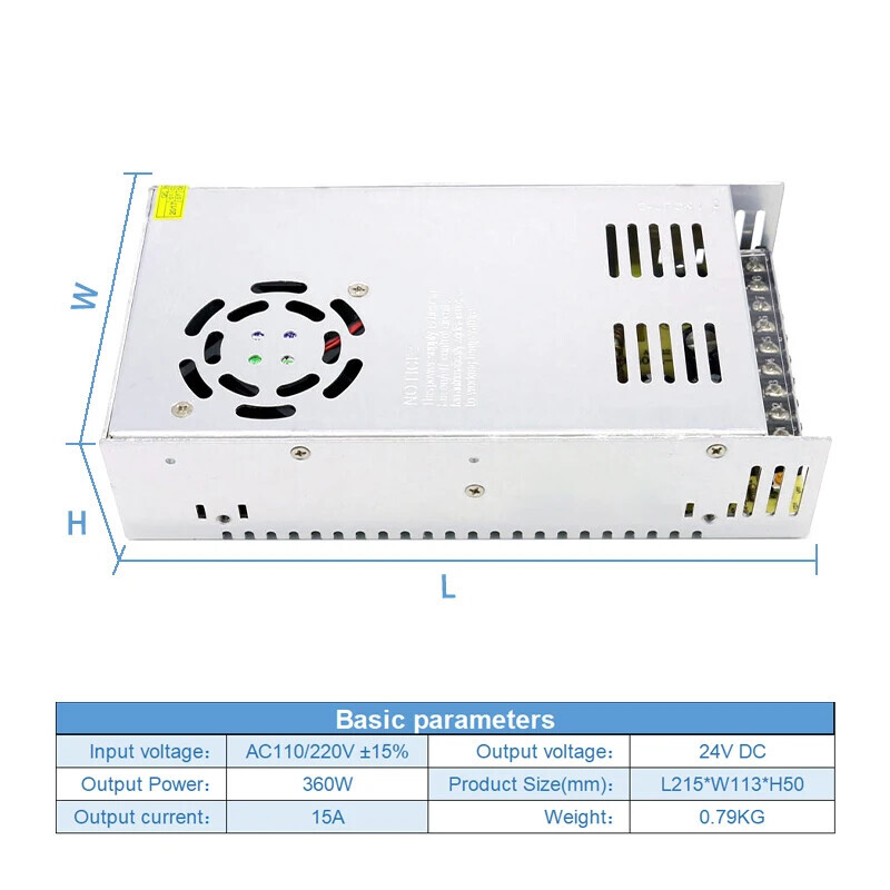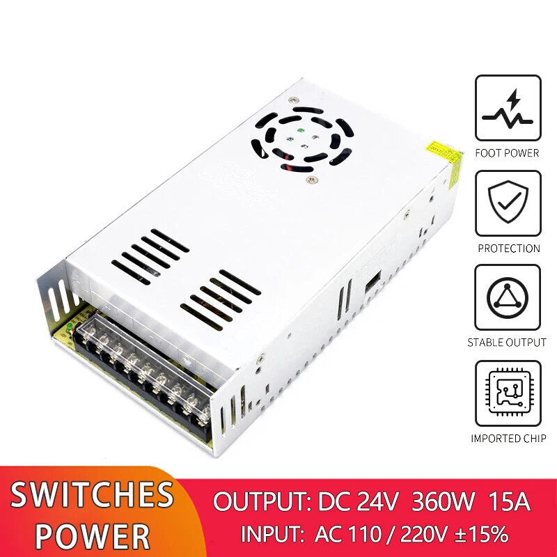24V 360W Switching Power Supply 110V-220V AC to DC Drive Switch On/Off Adapter