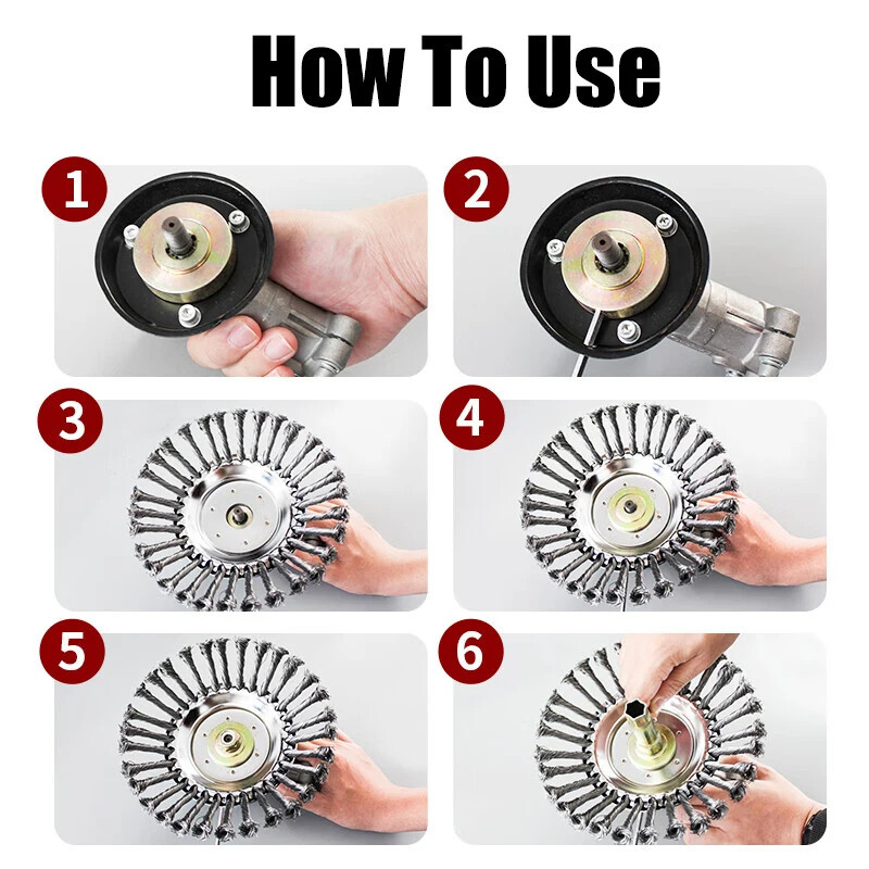 The weed brush is made of carbon steel wire, which can work normally when hitting the stone and hard block. Service life will be 10 times longer than other trimmer head.