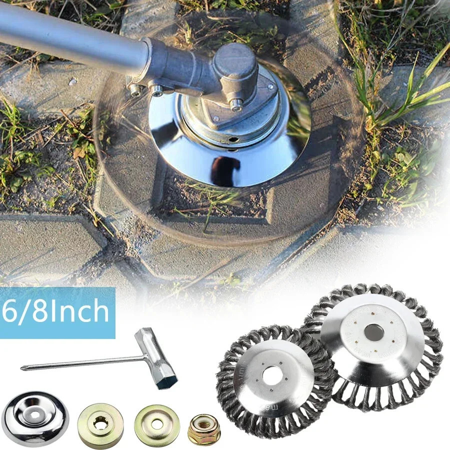 Upgrade 6/8 Inch Universal Weed Brush Cutter Head and Parts Steel Wire Wheel Brush Garden Trimmer Head for Garden Stone Cracks