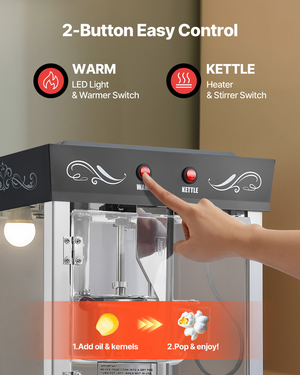 Master Theater-Style Flavor: Unlock the secrets to professional-grade popcorn with guided recipe. With this vintage popcorn machine, you can adjust sweetness or seasoning to match your cravings