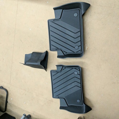 Exact item set is shown. New open box complete floor mat set with partial original packaging. Includes fixing clips. Made in China. No returns on installed items or partial sets. This item is a new, opened customer return. It has been inspected and passed quality control to insure the condition described and contents are accurate. Please review actual photos as stock photos are not the actual item, our photos are. You will ONLY receive exactly what is shown in photos, regardless of what might have originally been included. Please review our business policies in our store for information regarding returns, shipping and warranties.