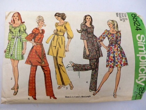 Vintage 1970 Simplicity Pattern Dress & Pants 2 Lengths Coolest Sleeves Sz 10