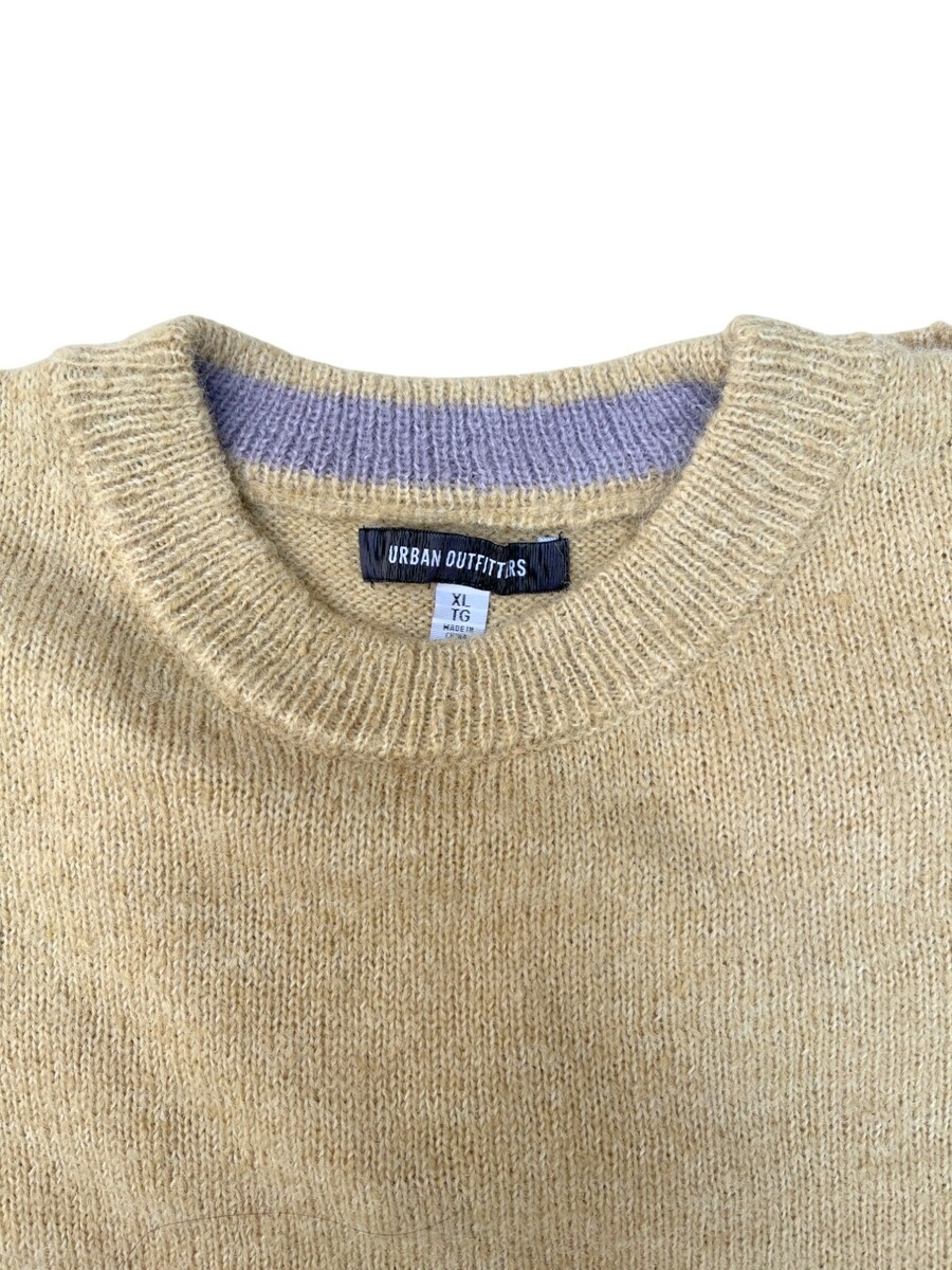 Urban Outfitters Mens XL Yellow Wash Hudson Shrunken Cropped Crew Knit Sweater