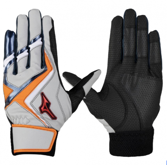 Mizuno Wild Drive Red Batting Gloves Baseball Sports Handwear Gray Orange 56354