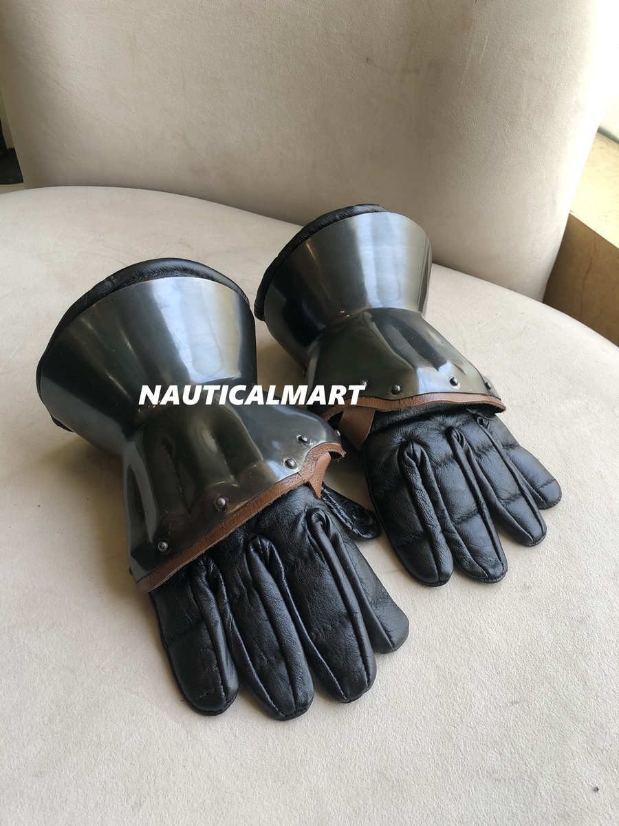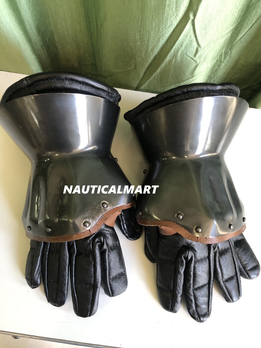 Medieval Hourglass Demi Gauntlets Medieval Hand Gauntlets LARP Armor - Halloween Costume for Roleplay and Cosplay Black