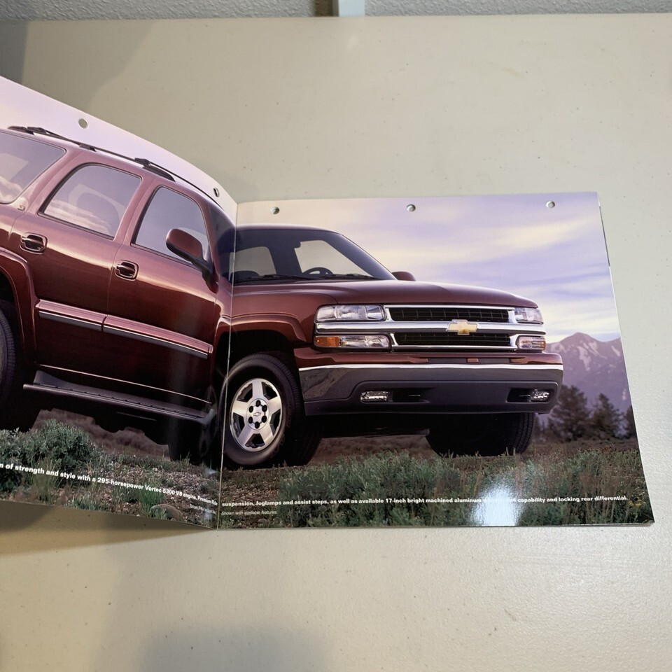 The product is an original 2004 Chevrolet Tahoe Deluxe sales brochure with a CD included. The brochure provides detailed information and visuals about the features and specifications of the Chevy LS, LT, and Z71 models from that year. This vintage auto brochure is a valuable collectible for fans of Chevrolet vehicles, offering a glimpse into the world of car sales and marketing in 2004.