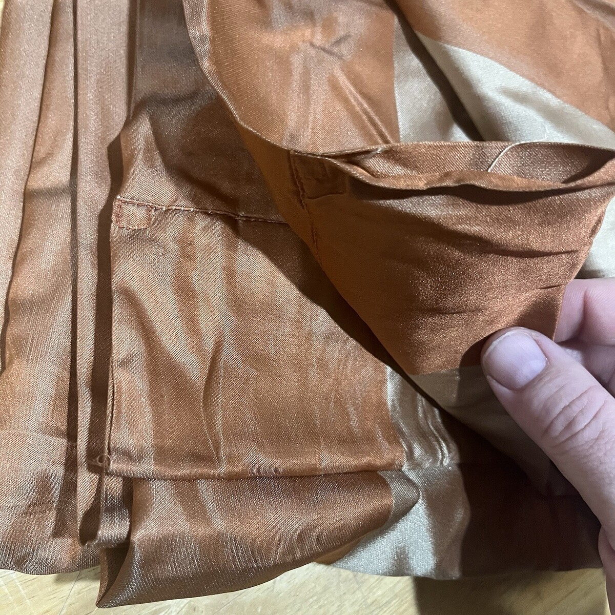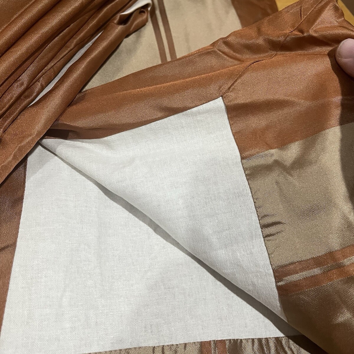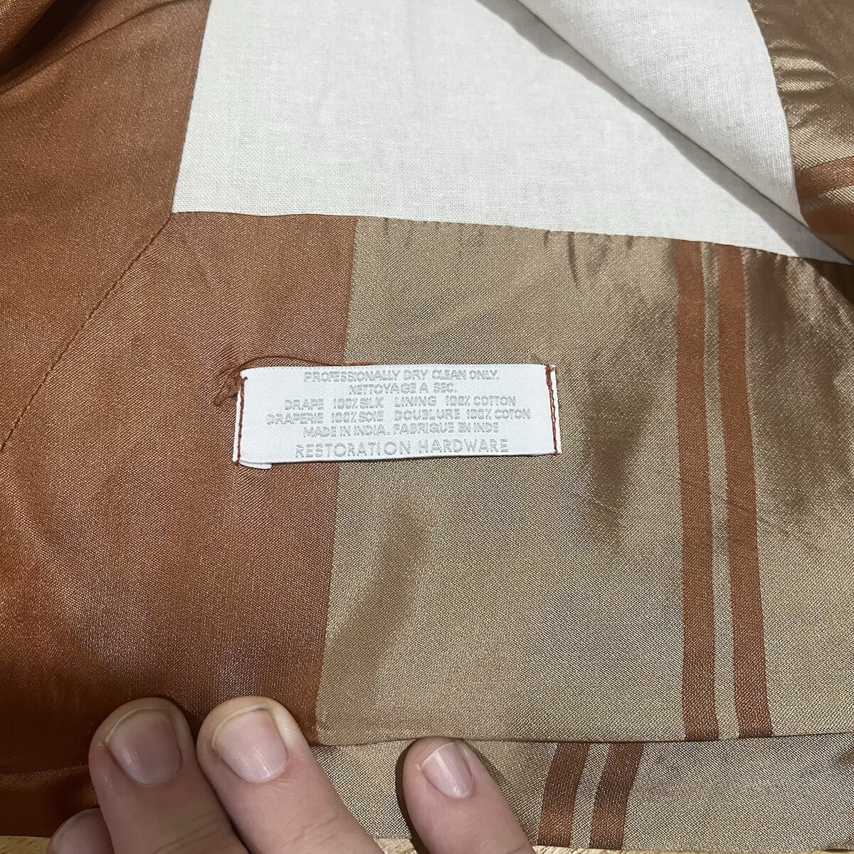 Restoration Hardware Silk Orange Gold Block Striped Curtain 50x94” 2 Panels