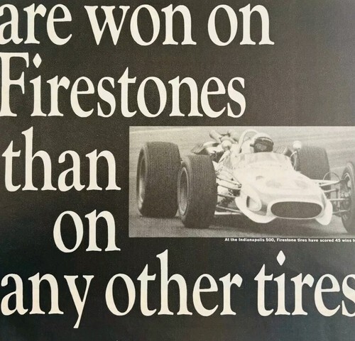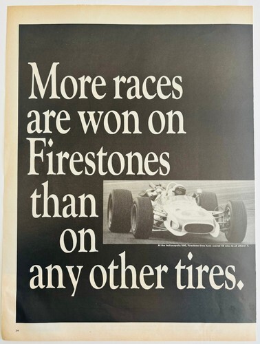 1968 Firestone Tires Indianapolis Advertisement Life Magazine Automobilia HM2BB