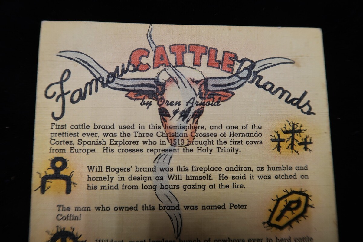 VTG Linen Postcard #1 Famous Cattle Brands Oren Arnold True Stories Wild West