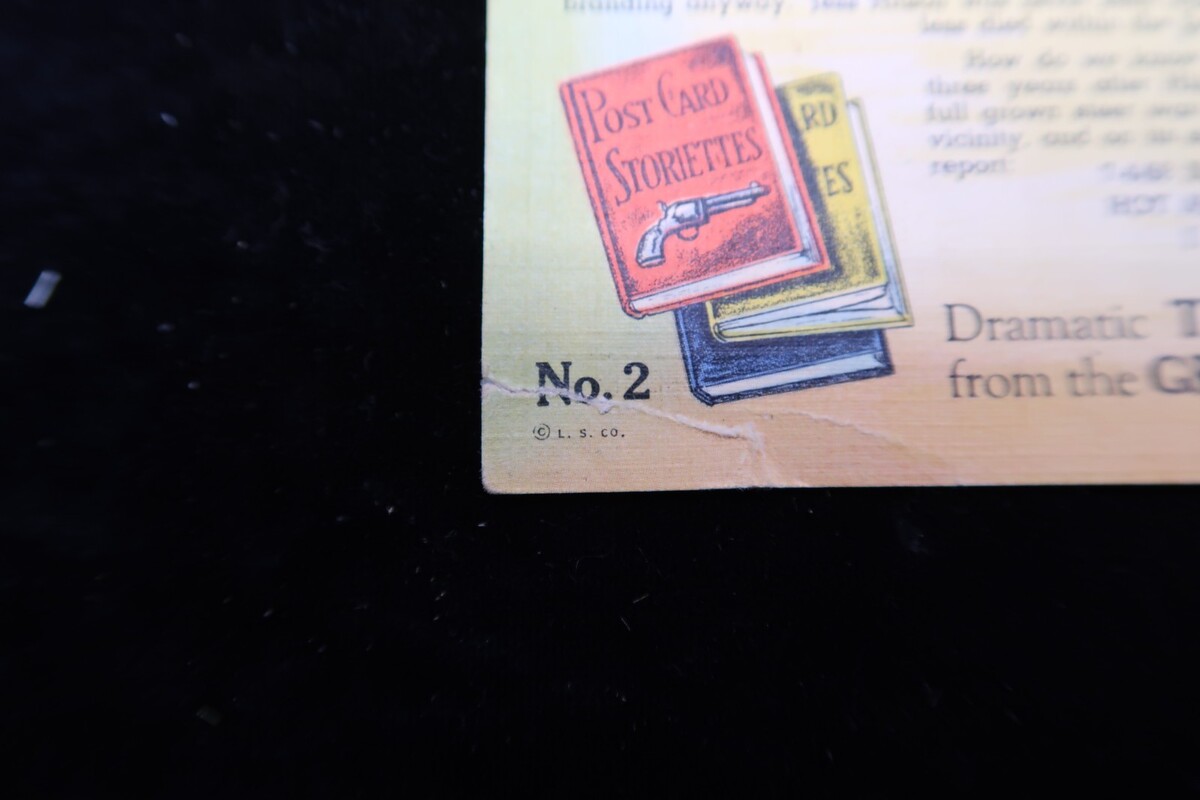 VTG Linen Postcard #2 Death Brand Oren Arnold Dramatic True Stories Wild West