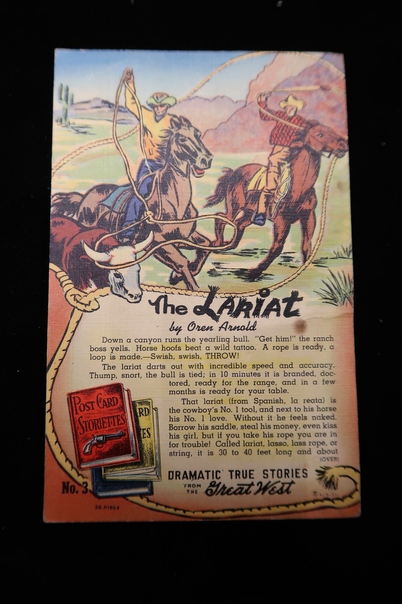 VTG Linen Postcard #3 The Lariat Oren Arnold Dramatic True Stories Wild West