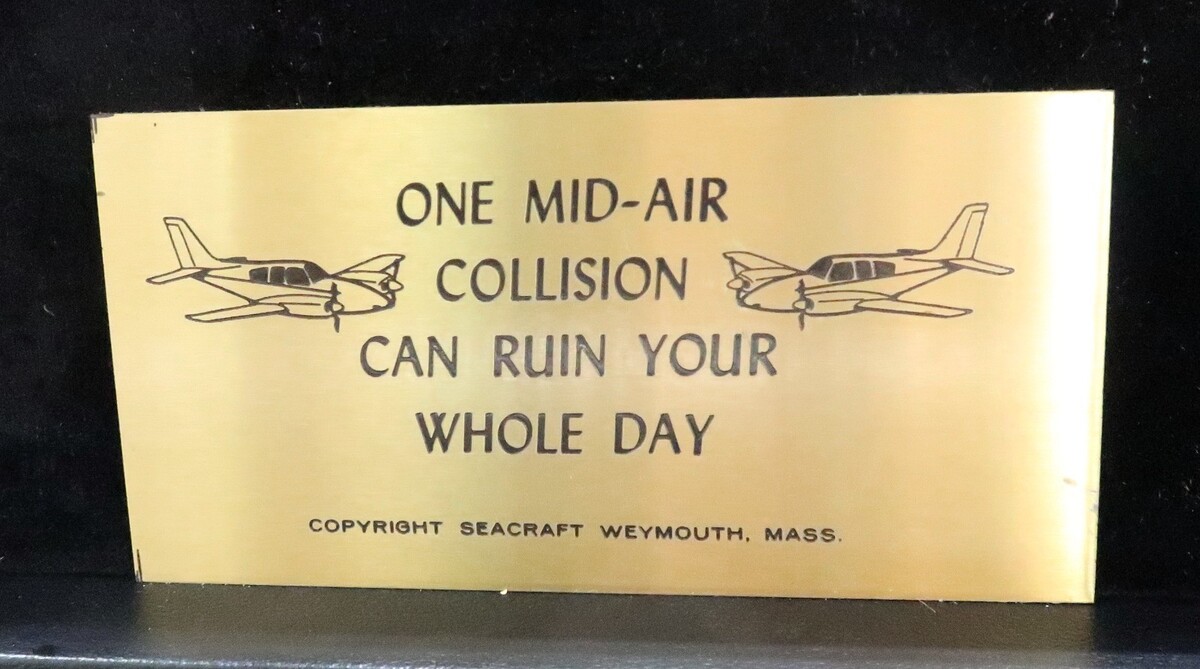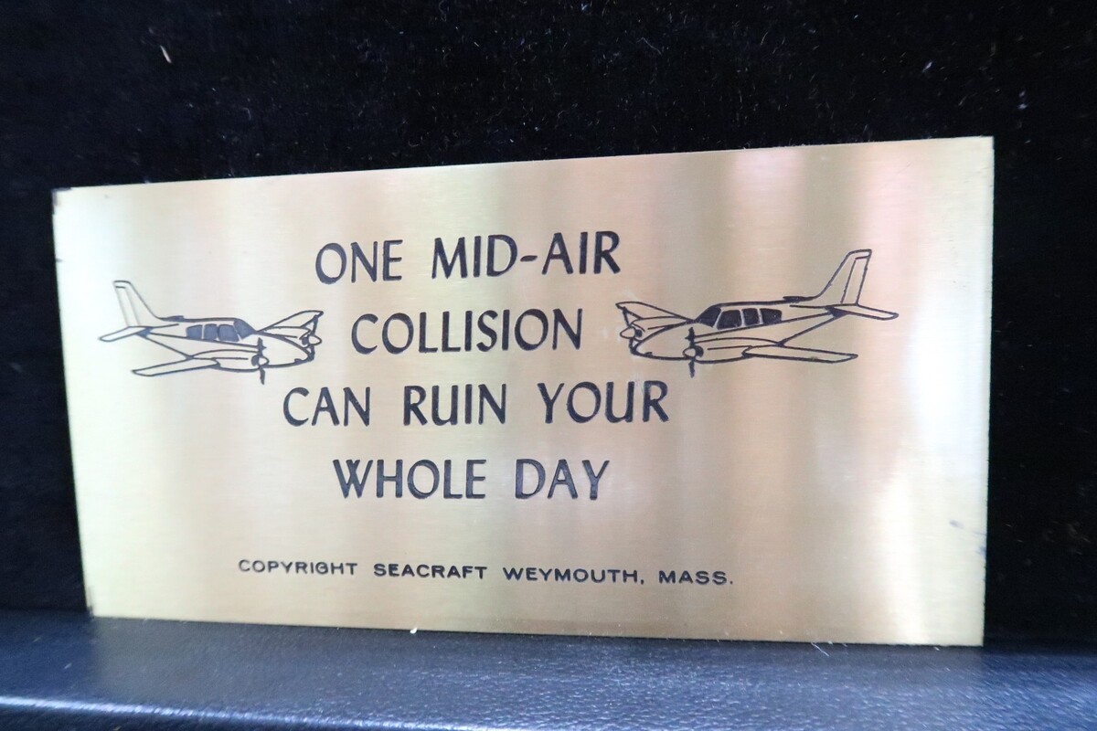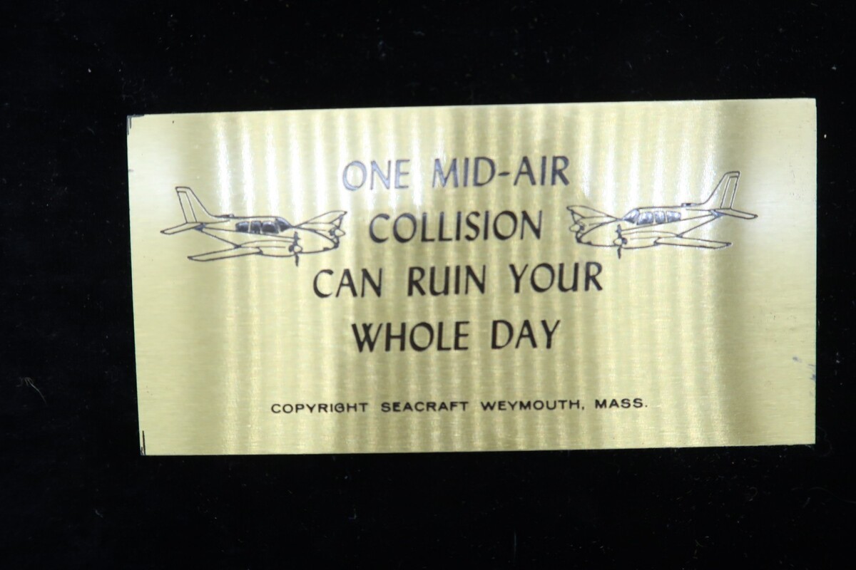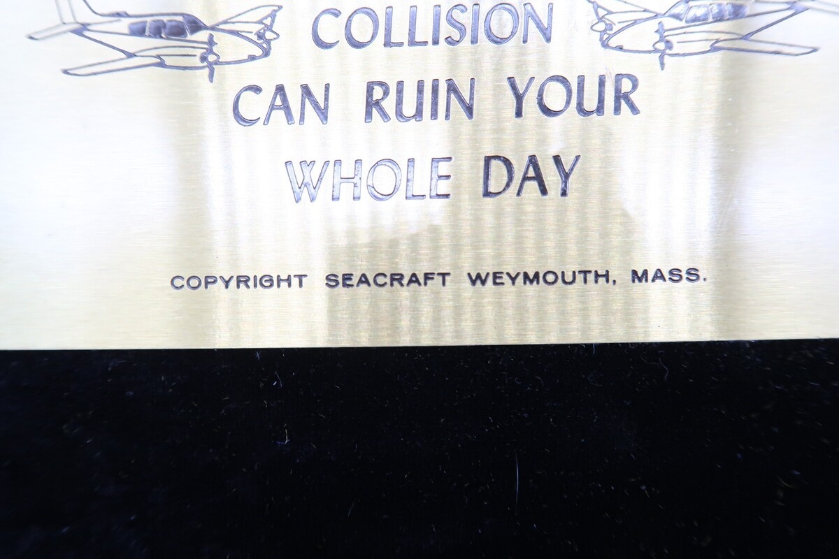 Vtg Plaque Pilot Air Traffic Control BY Seacraft Weymouth MA Mid Air Collision