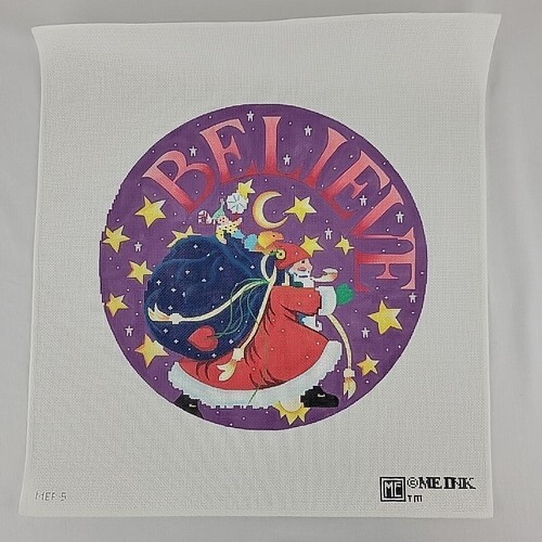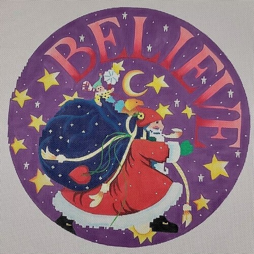 Handpainted Needlepoint Canvas Santa Ornament Mary Englebreit Stars Believe HP