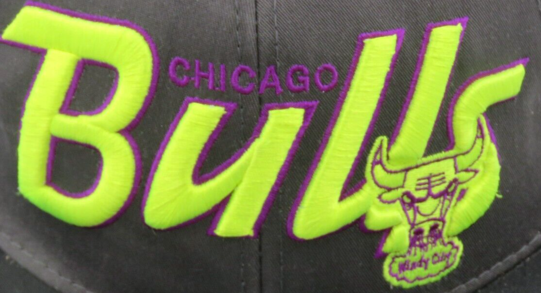 VTG Chicago Bulls 47 Brand Snapback Hat Hardwood Classics Neon Yellow Purple