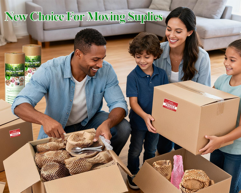 Space saving: The packing paper with honeycomb structure made it can be stretched from 200 feet to 320 feet. 1.6 times longer after stretching. Use less money, get more filler, and space saving. Also you can get 20 Fragile Sticker labels, to keep your boxes safe during transportation.
