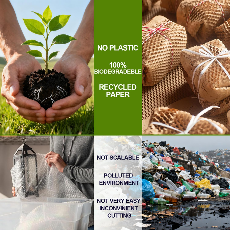 Environmental Friendly Packing Shipping Supplies :Eco friendly 100% biodegradable kraft paper, green alternative to plastic packaging materials .After stretching, the honeycomb structure can increase the cushioning performance and effectively protect the items that need to be wrapped.