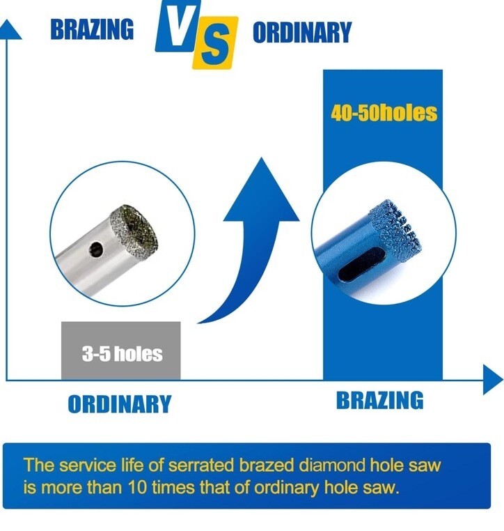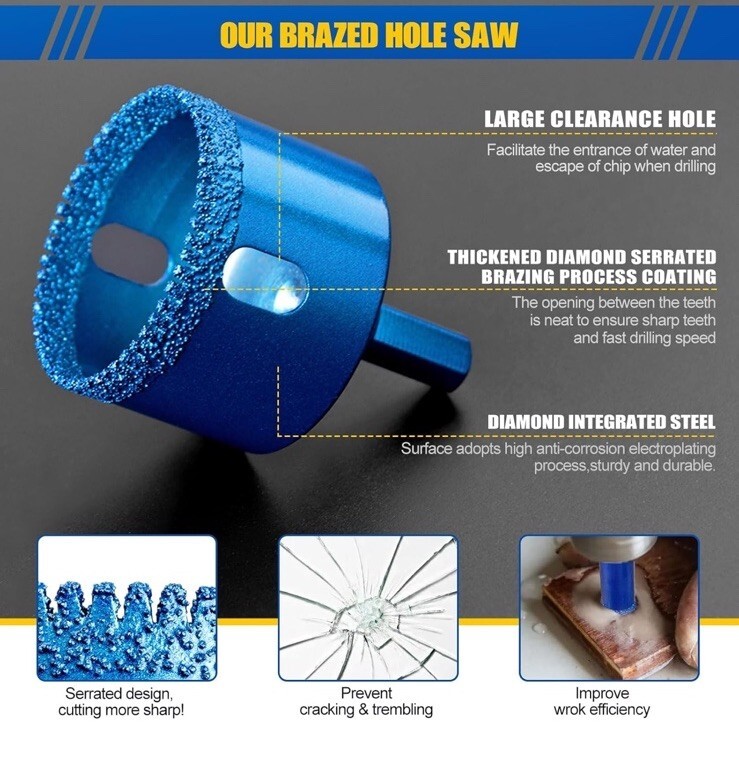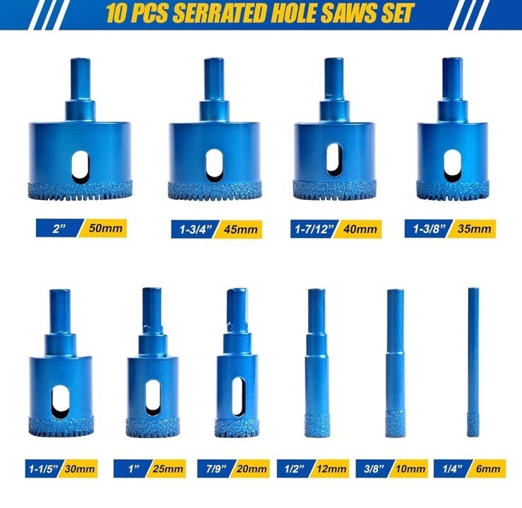 Diamond Hole Saw Tile Drill Bits Kit, 10 PCS Serrated Brazing Core