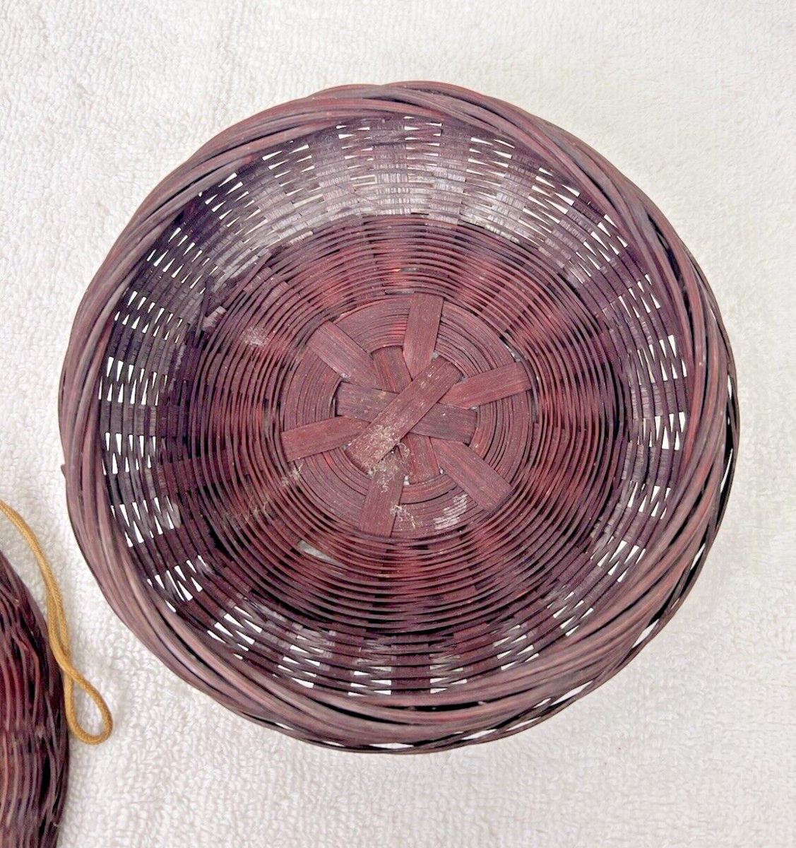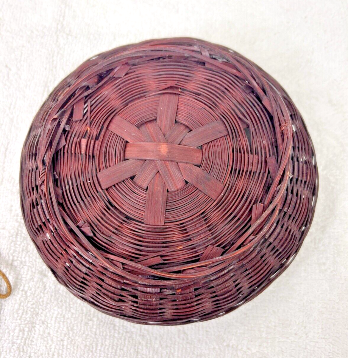 Vintage Chinese Peking Glass & Coin Sewing Basket 5 3/4 Inch Across