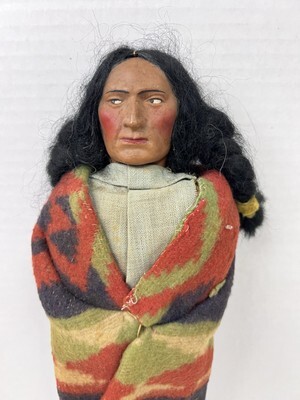 Vintage Skookum Male Indian Doll Pendelton Style Blanket 11 1/2 inches Tall In nice clean shape there was a tag on the bottom of his shoe but it's gone. The face is in great shape