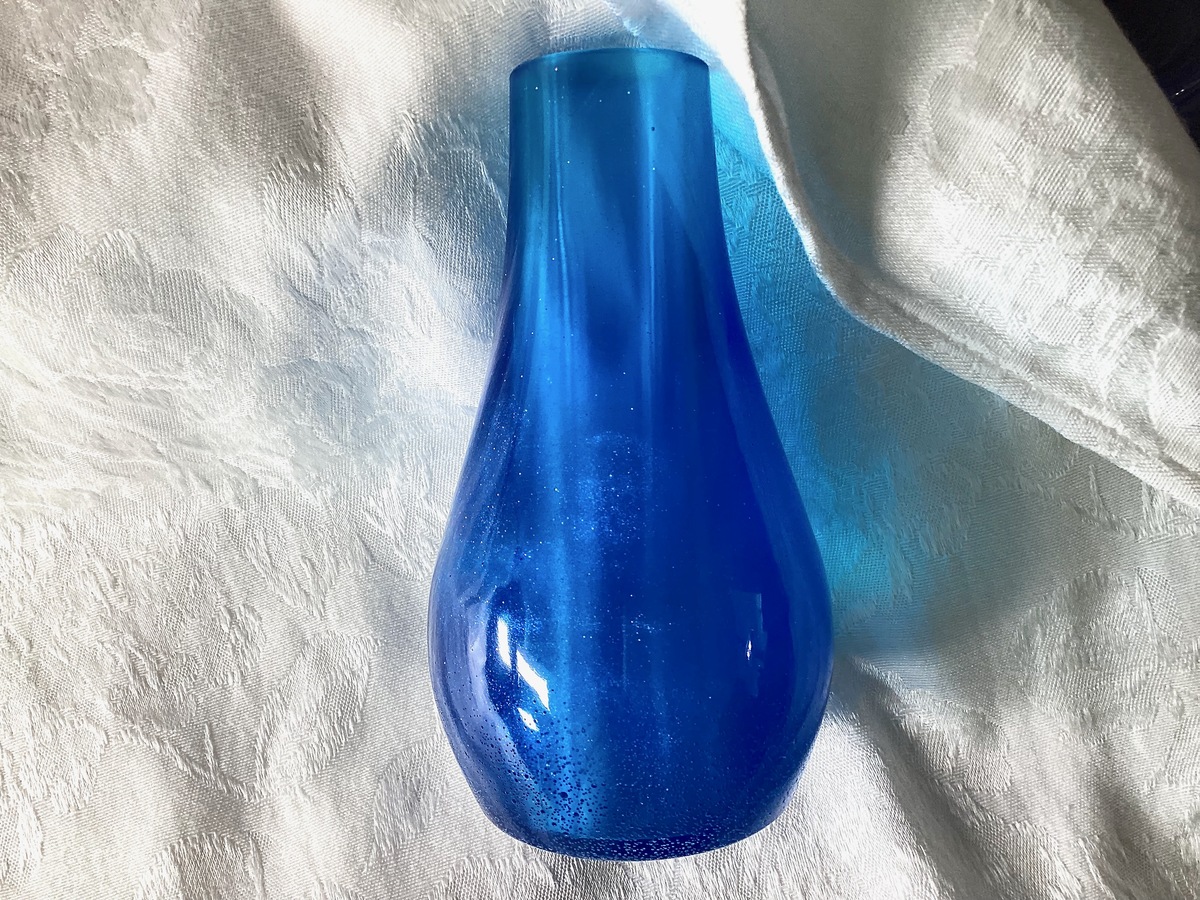 Vase Resin Blue Sparkly Handmade Medium Tall and similar items