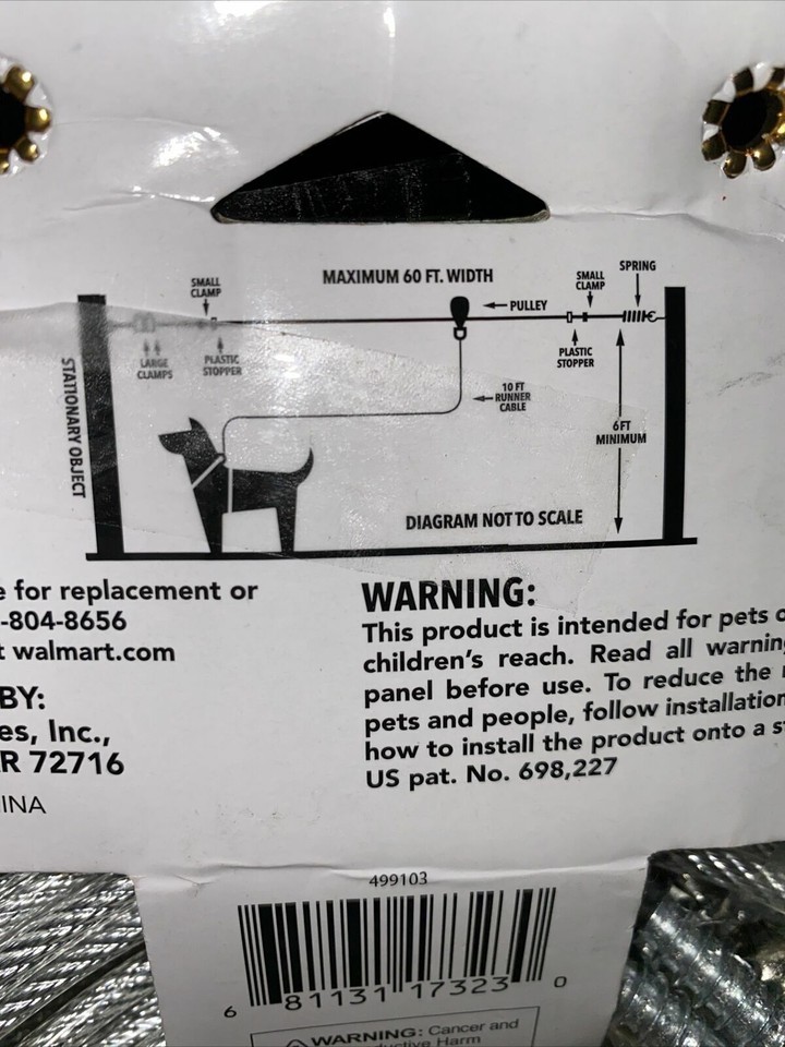 WARNING: This product is intended for pets only. Keep out of children?s reach. Read and follow all warnings on the back panel to avoid possible injury or death to your pet and possible injury to people. Follow installation instructions on how to install the product onto a stationary object.