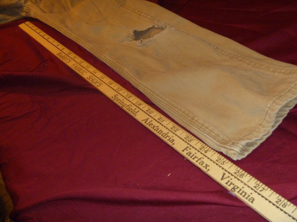 DEFECTS: MINOR HOLES ON KNEES. DOES NOT AFFECT THE OPERATION OF THE PANTS.