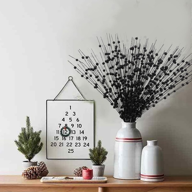 10 Pack Black Artificial Glitter Berry Stems 15.7" Fake Christmas Picks Decorati