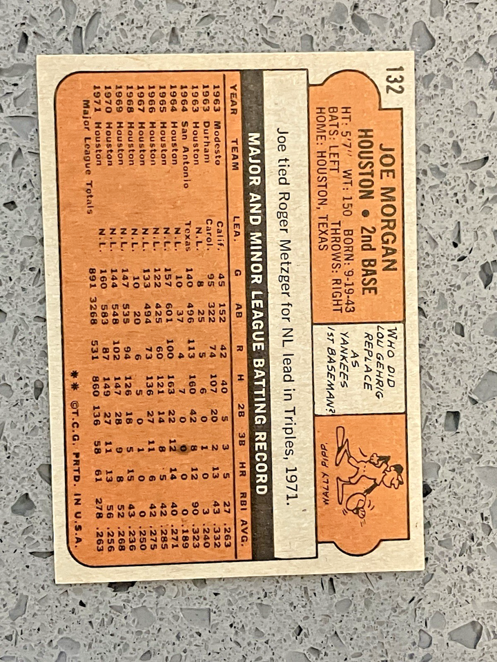Joe Morgan 1972 Topps #132 Houston Astros HOF NM-MT