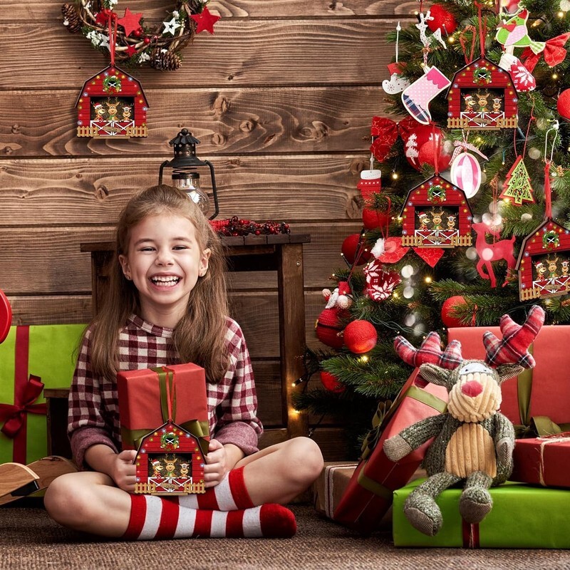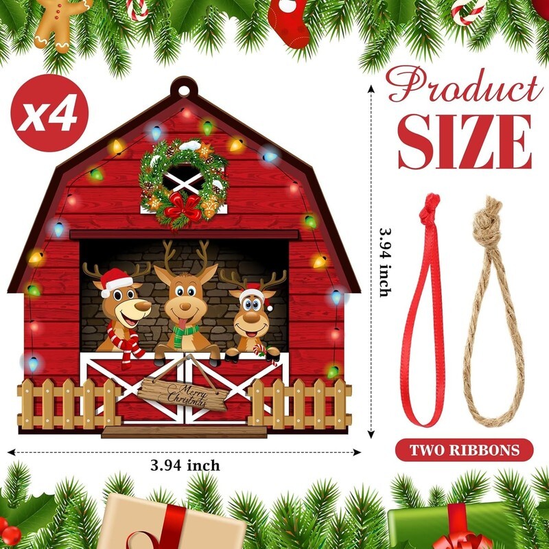 4 Pcs Christmas Ornament Gifts Wooden Reindeer Stable Hanging Ornaments for Tree