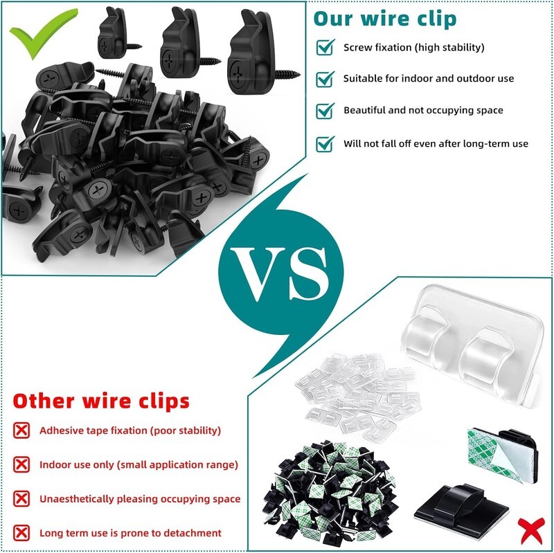 Secure and Stable: Our 50-pack Outdoor Light Hangers are designed with screw mounts for unparalleled stability, ensuring your string lights and decorations remain securely in place without swinging or falling.