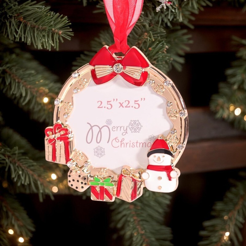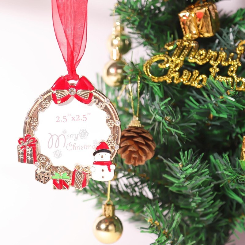Christmas Tree Ornaments Home Decor Christmas Decorations Xmas Gifts Decorations Holiday Keepsake Gift Pendant Can Insert Photos (Gold Snowman-1)