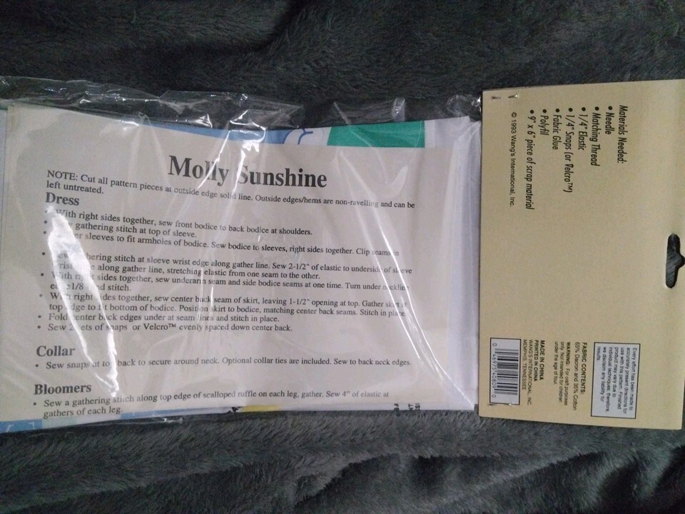 The VTG NIP Just For Keeps HBP001 Doll Clothes Pattern "Molly Sunshine" from 1993 is a vintage original pattern designed for dolls. Made in China by the brand Just for Keeps, this pattern allows collectors to create custom clothing for their doll collection. Perfect for those interested in sewing and doll enthusiasts looking to add unique pieces to their collection, this pattern captures the essence of 90s fashion and creativity.