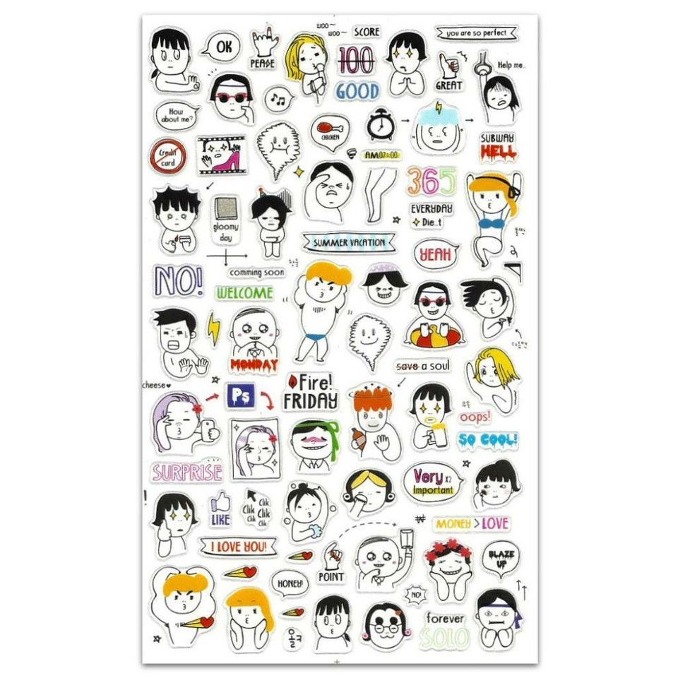 CUTE TODAY STICKERS People Daily Activity Clear PVC Sticker Sheet Craft Diary