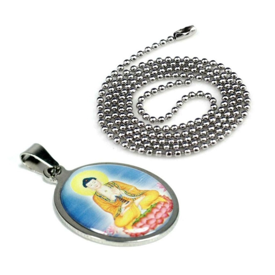 BUDDHA NECKLACE Stainless Steel Color Pendant 23" Ball Chain Buddhist Jewelry