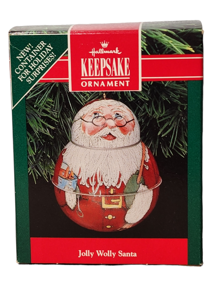 Vintage Hallmark Tin ?Jolly Wolly Santa? Christmas Holiday Ornament NIB