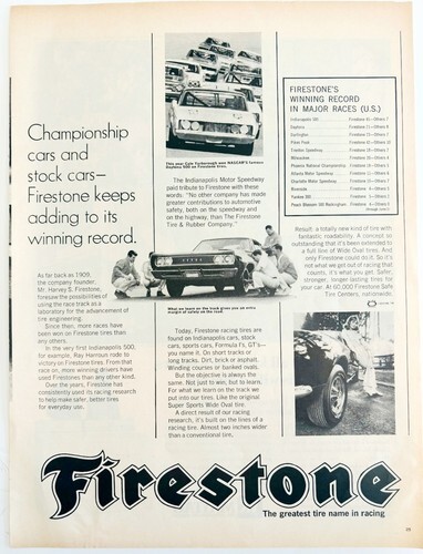 1968 Firestone Tires Win Records Advertisement Life Magazine Automobilia HM2BB