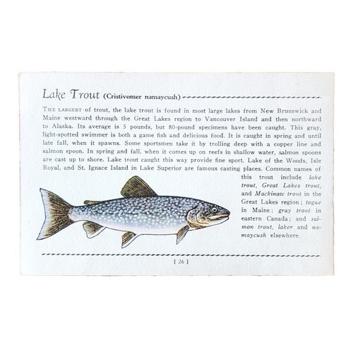 Lake Trout 1939 Fresh Water Fish Art Gordon Ertz Color Plate Print PCBG20