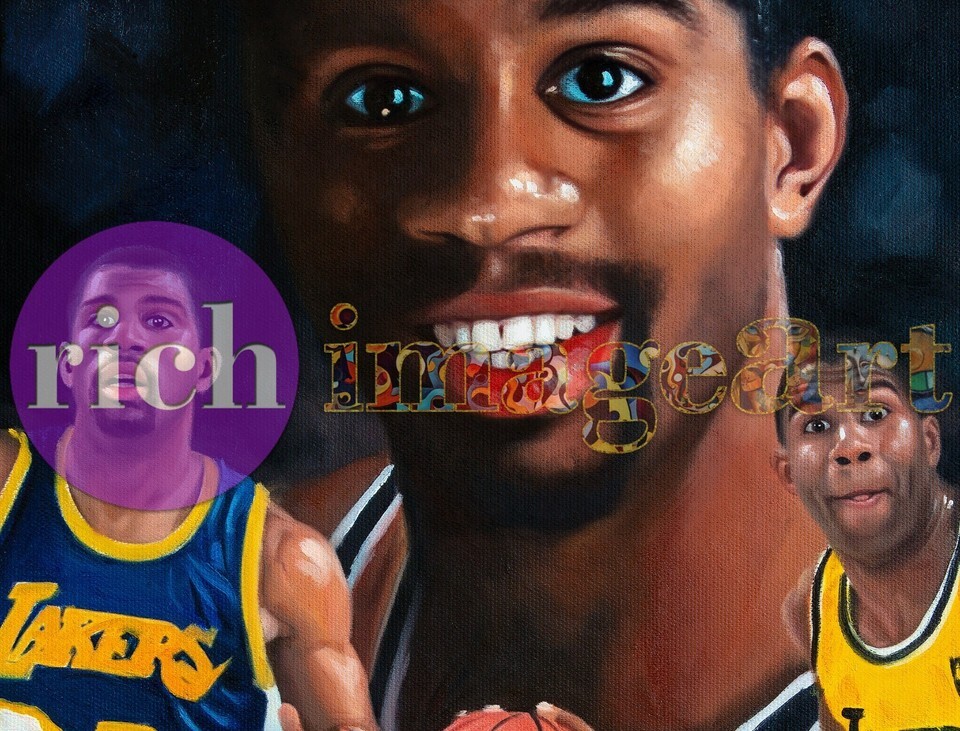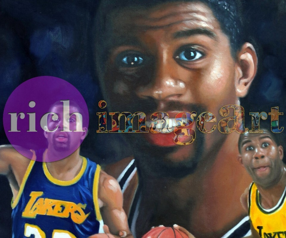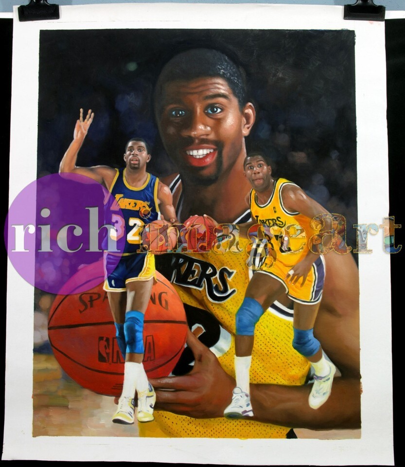 LA Lakers Earvin Magic Johnson Los Angeles Art Original Oil Painting. This is the one and only exclusive work of art!