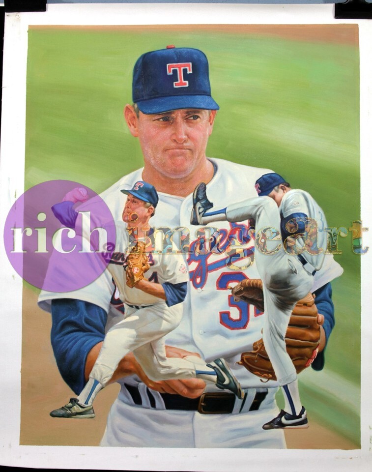 Nolan Ryan Texas Rangers MLB Baseball Art Original Oil Painting 1