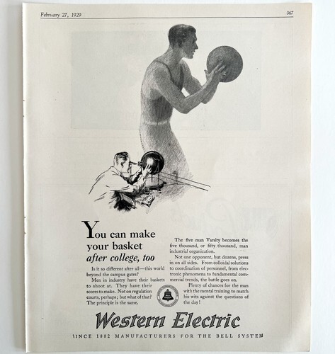 Western Electric Bell System Basketball 1929 Advertisement AT&T Telephone DWCC14