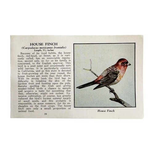 House Finch Bird Print 1931 Blue Book Birds and similar items