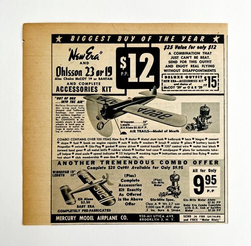 1949 Aviation Ohlsson 23 or 19 Model Airplane Advertisement McCoy Mercury